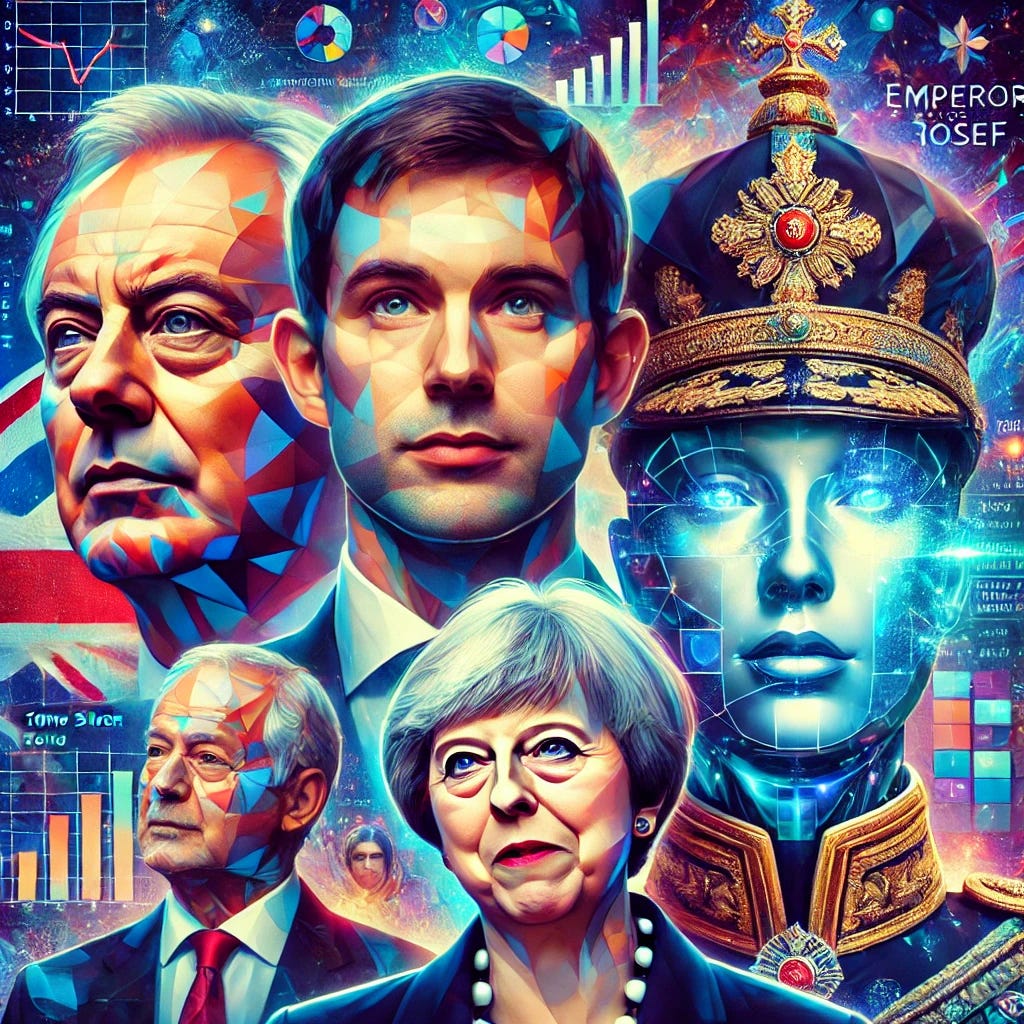 And for those who wondered what on earth is going on in the image above, I asked ChatGPT: “Could you please do me an image with the faces of Tony Blair, Nate Silver, Emperor Franz Josef, Theresa May and an AI chatbot”…
