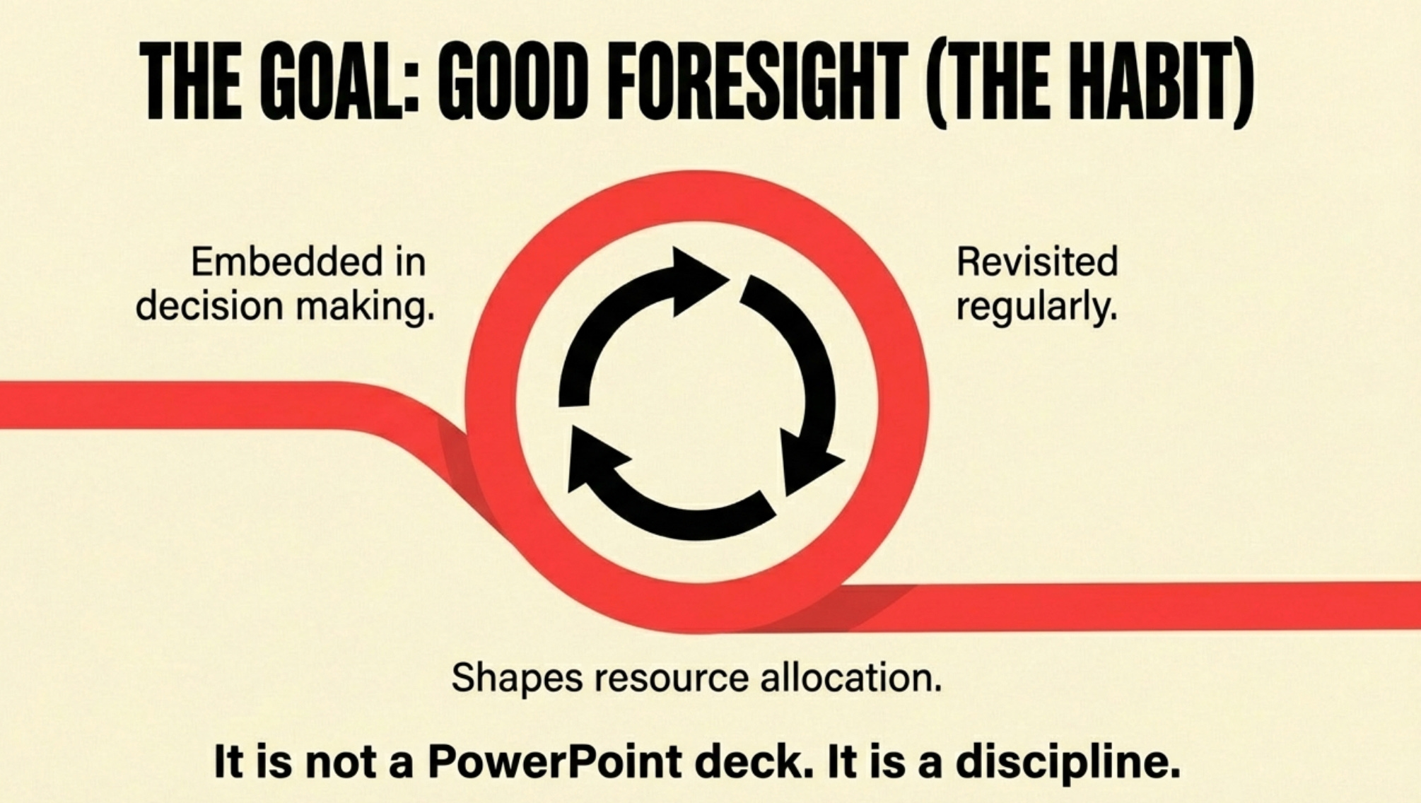 Good foresight is embedded in how decisions get made. It’s revisited regularly as conditions change. It shapes strategy, resource allocation, and organizational priorities—not just PowerPoint decks.